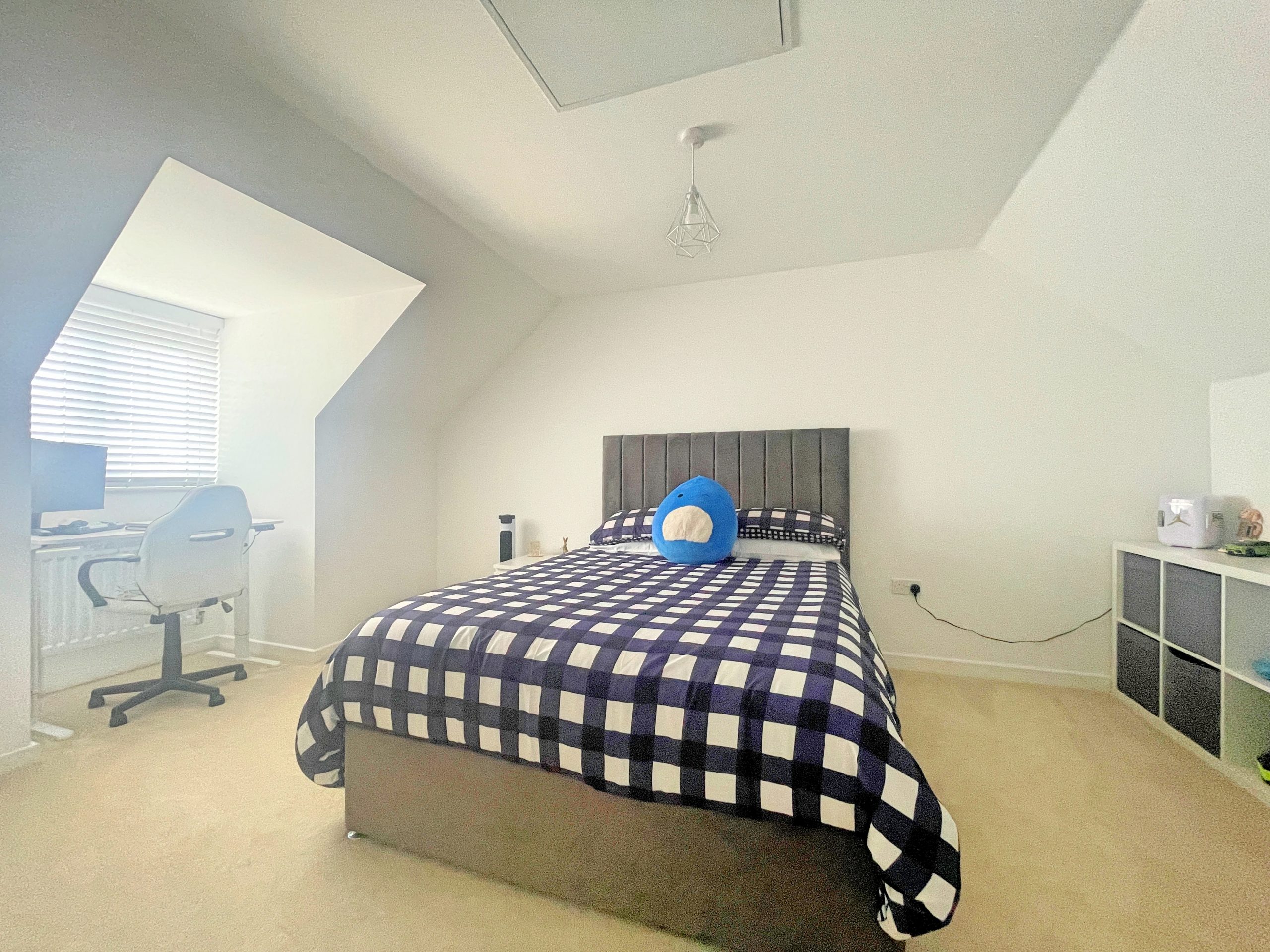 UPVC window to front, loft access and radiator.